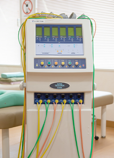 太陽接骨院では、基本的にはマッサージを基本とした手技での療法を行いますが、患者様それぞれの症状に合わせて治療法を選択する中、各種治療器を使用しています。