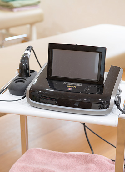1MHz(深層部治療)と3MHz(浅層部治療)を使用し患部を治療します。